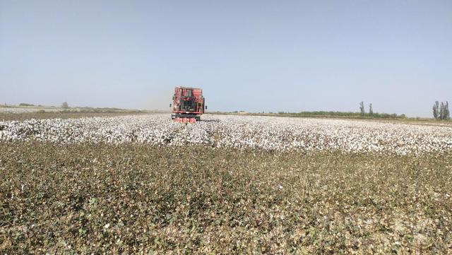 眼下,正值棉花采收期。在普惠乡,34.6万亩棉花陆续开始采摘工作,田间地头随处可见采棉机往来穿梭,机声隆隆,一派繁忙景象。