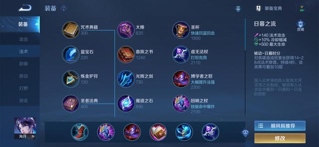 玩了一天,在这里,小编推荐两套出装,主要是针对顺风局和逆风局两种不同情况。